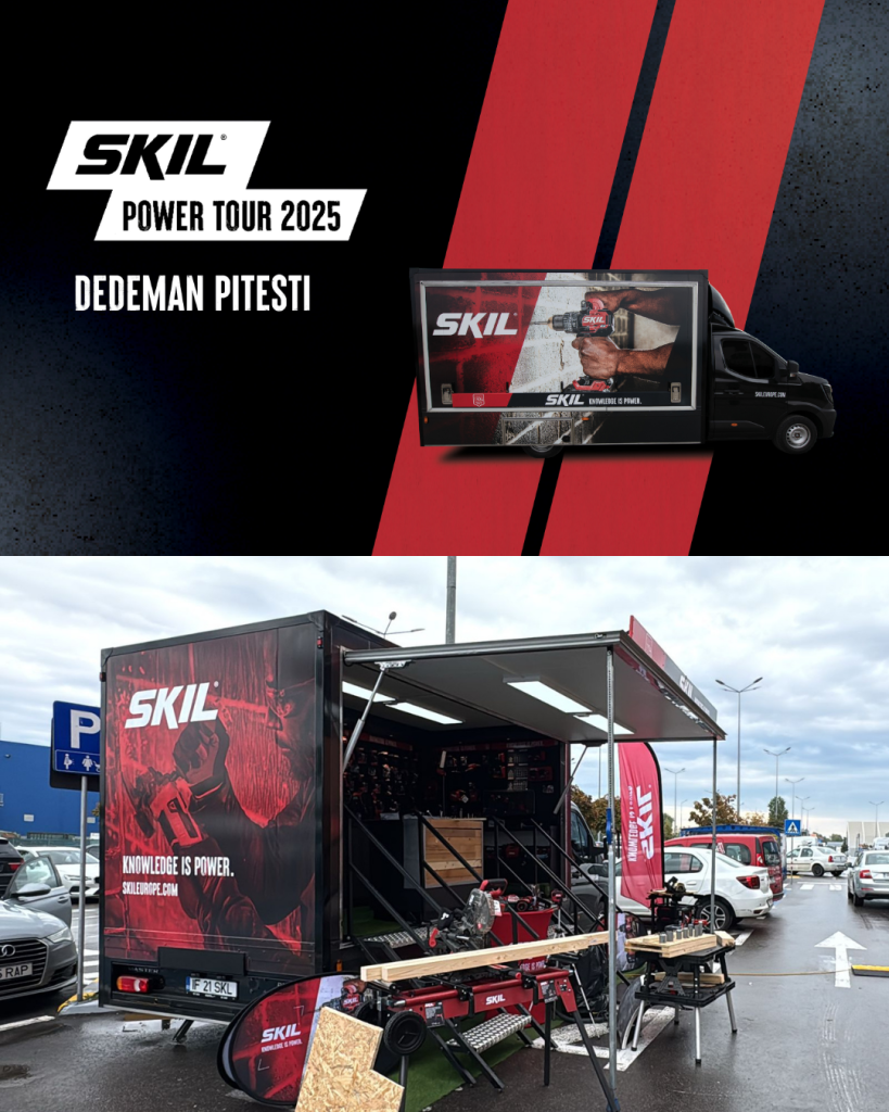 SKIL Power Tour este un concept interactiv care va călători în mai multe orașe cheie din țară, cu opriri programate în magazinele partenerului Dedeman. Evenimentul este conceput pentru a oferi utilizatorilor o experiență practică (hands-on) cu sculele SKIL și, de asemenea, pentru a contribui la actualizarea cunoștințelor personalului partenerilor cu privire la inovații și noile tehnologii. Participanții vor putea testa cele mai noi scule electrice, descoperind puterea, precizia și tehnologiile inovatoare care definesc brandul SKIL.